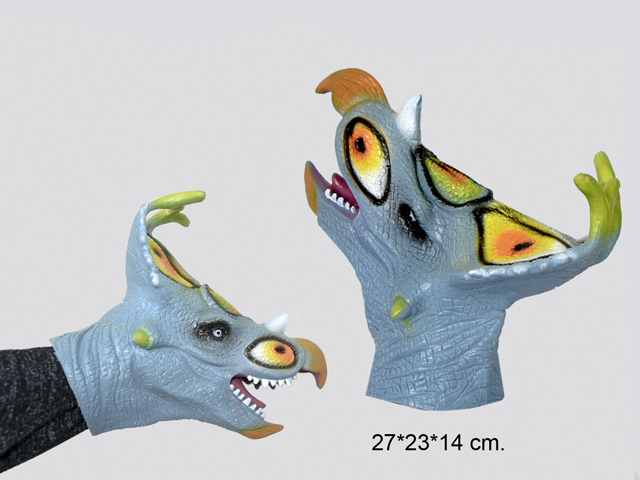 Очень реалистичная резиновая голова динозавра, которая надевается на руку как варежка.