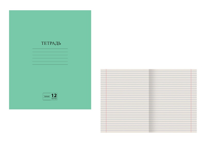 кс_Тетрадь арт. 104985 ЗЕЛЁНАЯ обложка 12 л., линия с полями, офсет №2 ЭКОНОМ "ПИФАГОР"