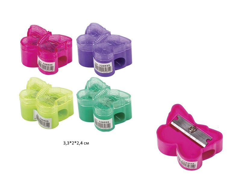 кс_Точилка арт. 226935 ПИФАГОР с контейнером пластиковая "Бабочка" цвет корпуса ассорти