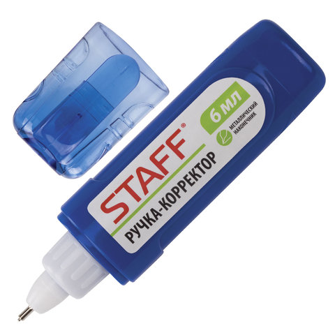 - Корректирующая ручка оснащена клапанным механизмом, и подача жидкости осуществляется с помощью нажатия на наконечник ручки.