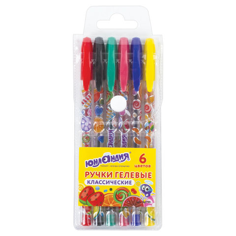 кс_Ручки гелевые арт.142799 ЮНЛАНДИЯ, НАБОР 6 шт,АССОРТИ,корпус с печатью,узел 0,5мм, линия 0,35ммДлина сменного стержня: 130 мм