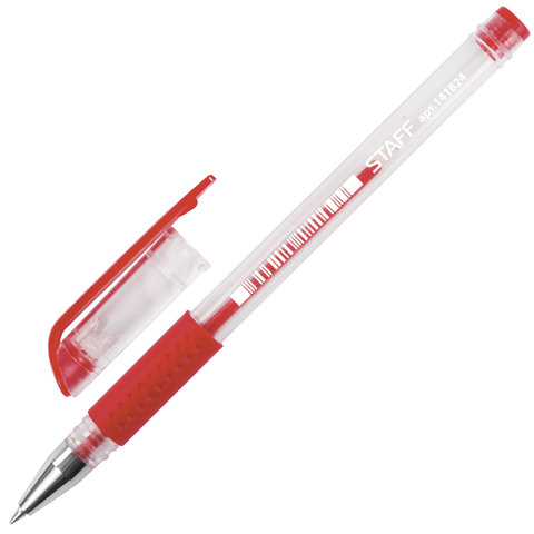 кс_Ручка гелевая с грипом арт.141824 STAFF,КРАСНАЯ,корпус прозрачн,узел 0,5 мм,линия письма 0,35 ммЦвет чернил: красный.