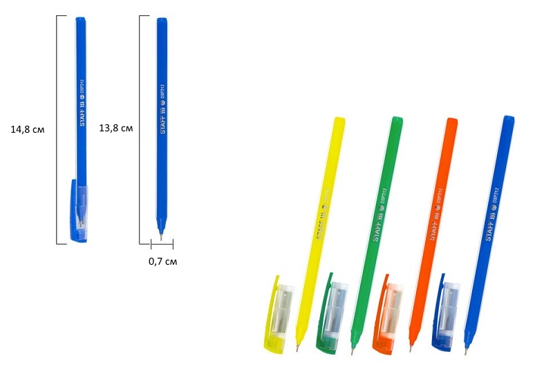 кс_Ручка шариковая масляная арт.143012 STAFF Basic"OBP-312"СИНЯЯкорп.ассорти узел0,7мм лин.письма0,3Особенности: одноразовая
