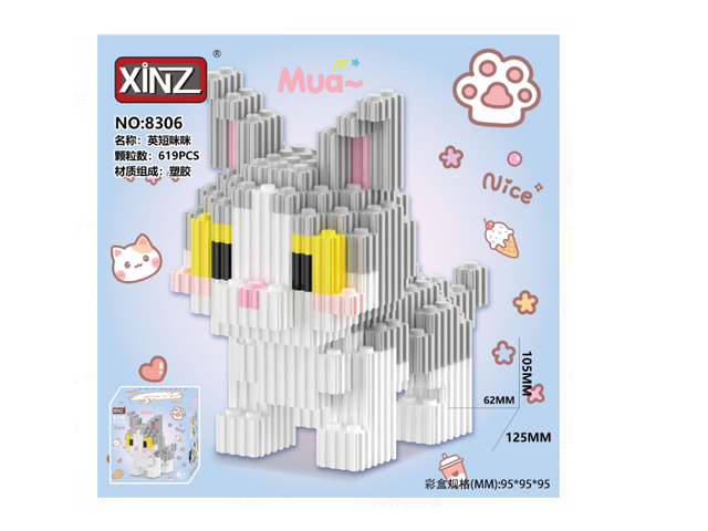 Конструктор арт. 8306-802-805 Микро Кошка серо-белая 619 дет. в кор.|