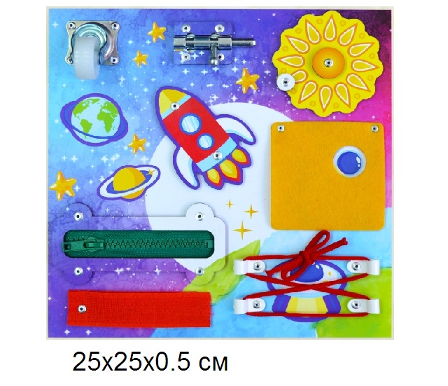 К основной панели снизу крепятся 3 игрушки, которые можно снять при желании. Каждая из игрушек выполняет свою определенную функцию. Улитка издает определенный звук при нажатии на ее раковину. Медвежонок выполняет роль погремушки, а также развивает мелкую моторику, благодаря 3-м колечкам, нанизанным на ось, которые так интересно перебирать. Яблоко с гусеницей помогает понять ассоциативный ряд и улучшает пространственное мышление.