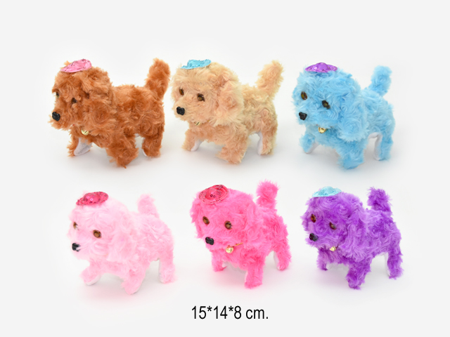 им Собака арт. 810-24" Бежевая на батар. в коробке 15,5*11*16У питомца мягкая и красивая шерстка. Щенок ходит, гавкает, виляет хвостиком и поворачивает голову. Игрушка включается при нажатии на кнопку на поводке.