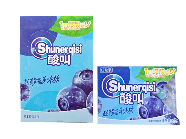 Конфета арт. 112918/112857 Суперкислая "Черника" 10 г на листе 30 шт. в кор.*