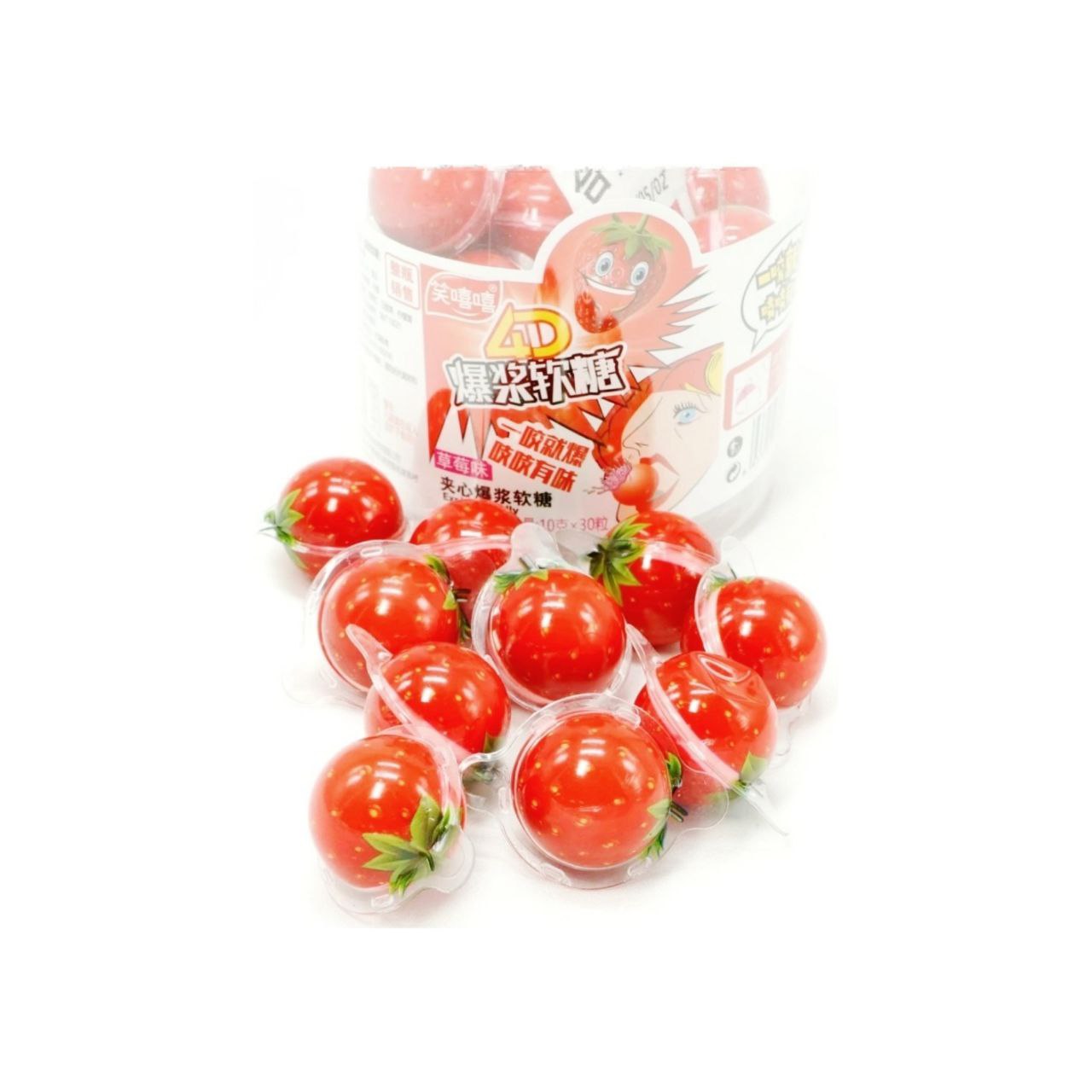 Мармелад арт. 345170-6 Жевательный с начинкой "Клубника" 10 г 30 шт. банка#'