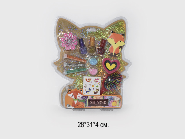Набор косметики арт. 6121 "Лиса" лак,наклейки,расческа,заколка на блистере.~/72шт./