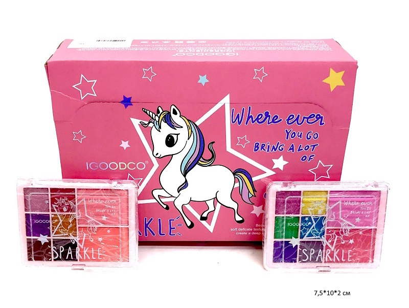 Набор косметики: палетка теней. Продукт не раздражает детскую кожу.