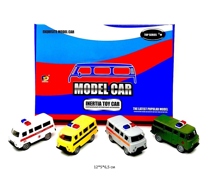Модель металл. арт. DD-2801P Инерц. УАЗ Скорая, Пожарная, МЧС (12 шт.) шоубокс_