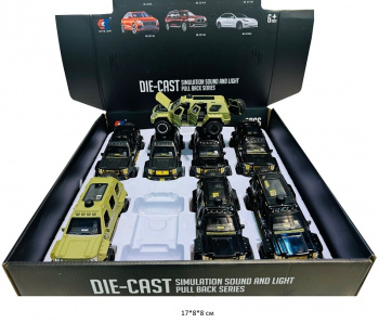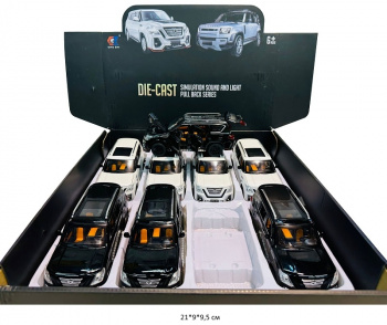 - Модель металл. арт. CZ15A Джип цвета микс (12 шт.) шоубокс_×Модель металл. арт. CZ15A Джип цвета микс (12 шт.) шоубокс_Металлическая машинка Тойота Ленд Крузер цвета в ассортименте. Открываются двери, детально проработанный салон.