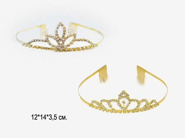 Диадема арт. DP-24D-080-709 Стразы золото 1 шт. в пак. (24 шт.)